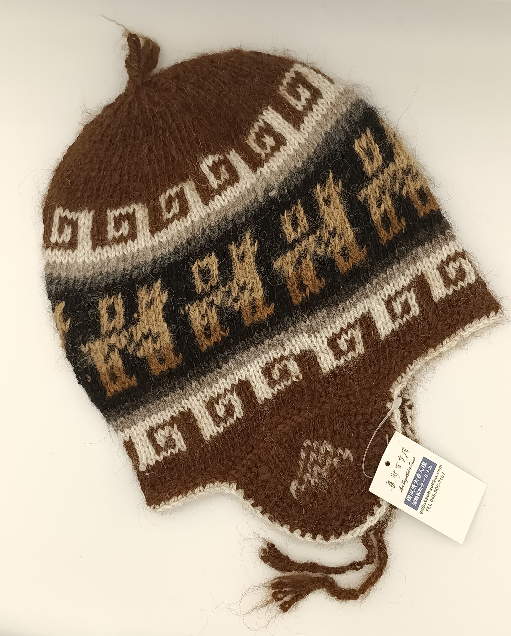 アルパカ帽子 100% 手編み 耳当て付き YAHT051