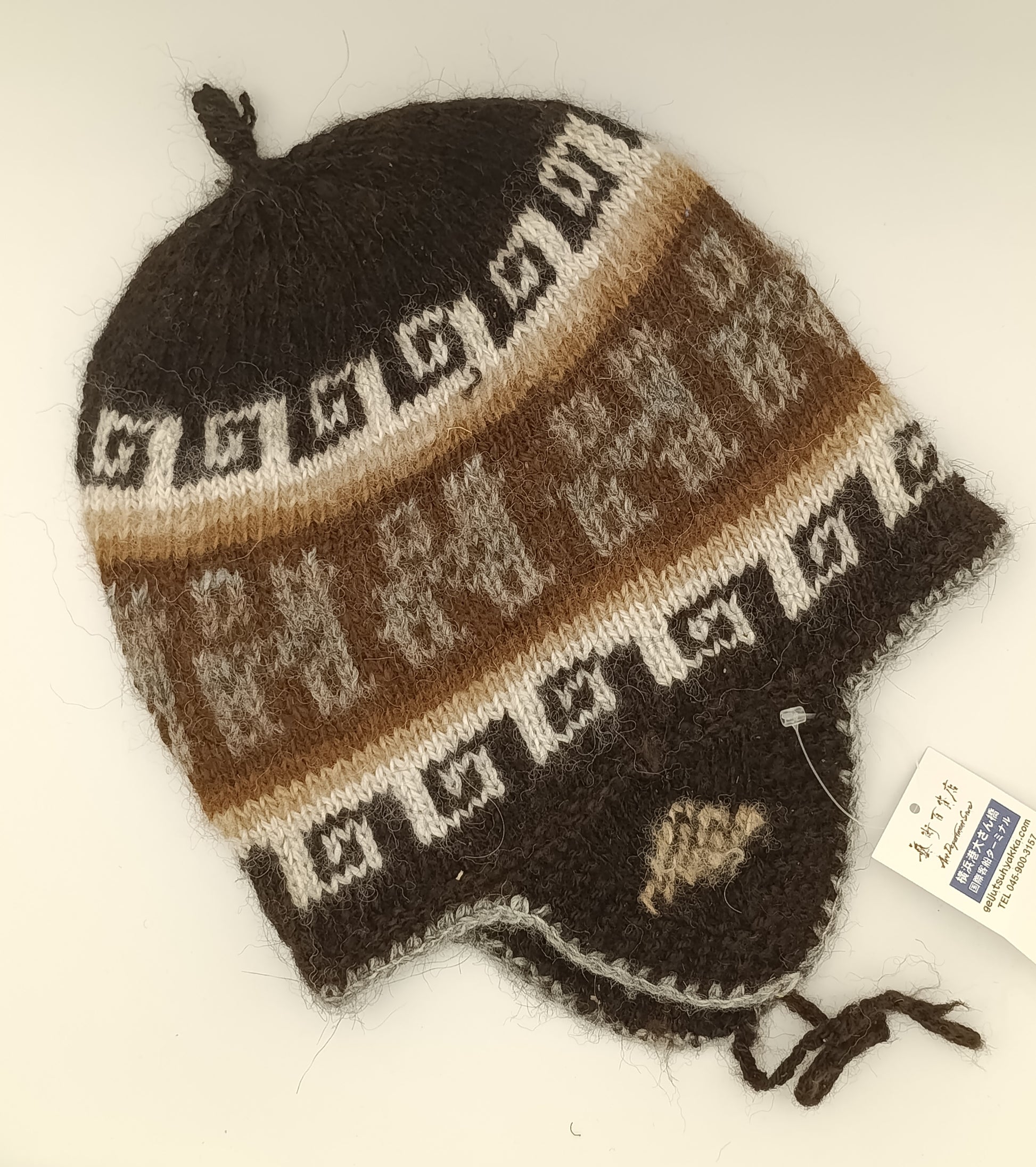 アルパカ帽子 100% 手編み 耳当て付き YAHT052
