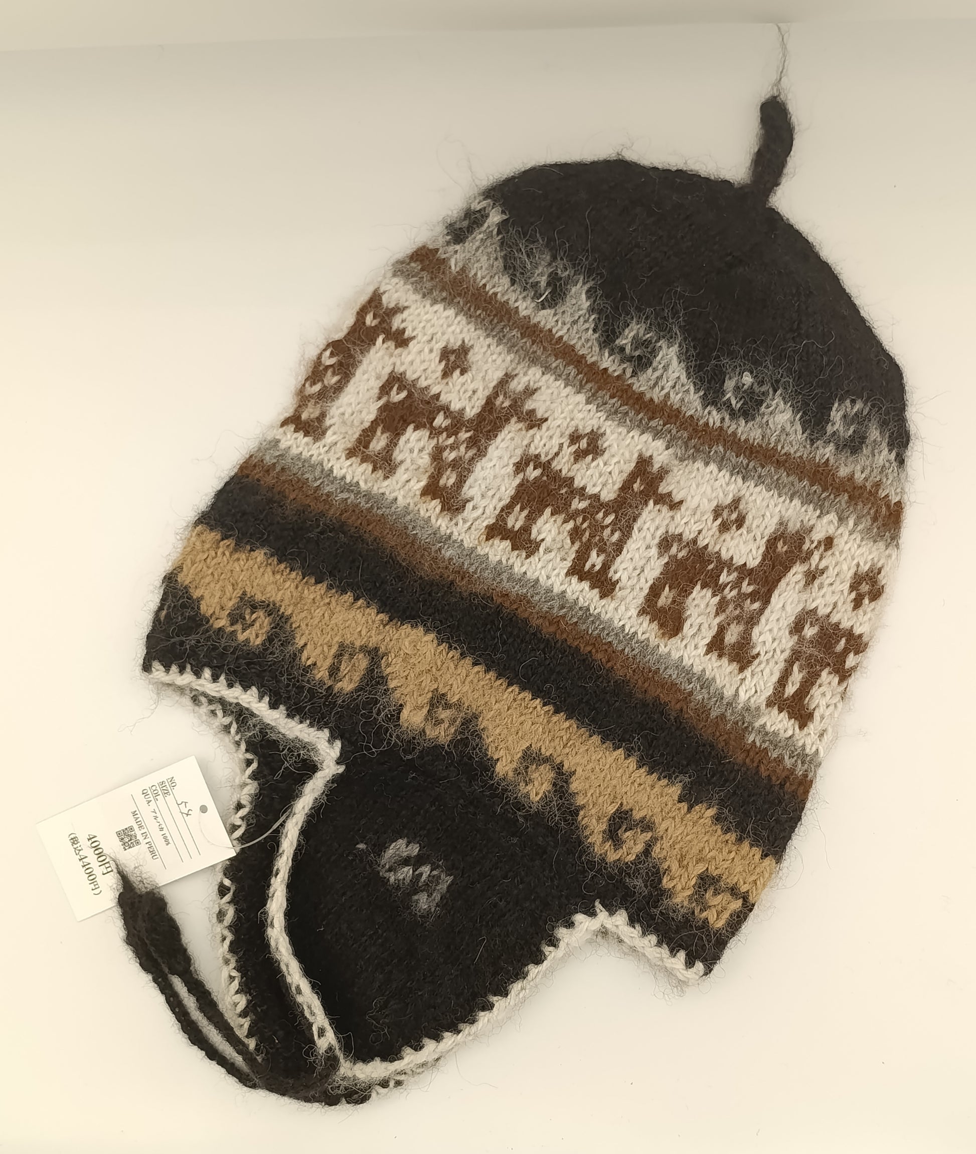 アルパカ帽子 100% 手編み 耳当て付き YAHT054