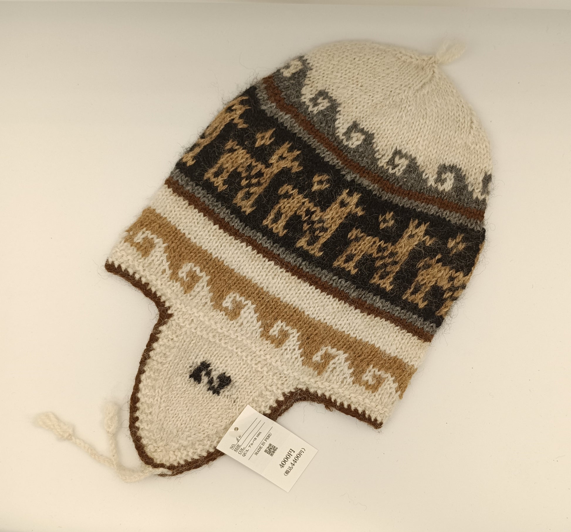 アルパカ帽子 100% 手編み 耳当て付き YAHT060