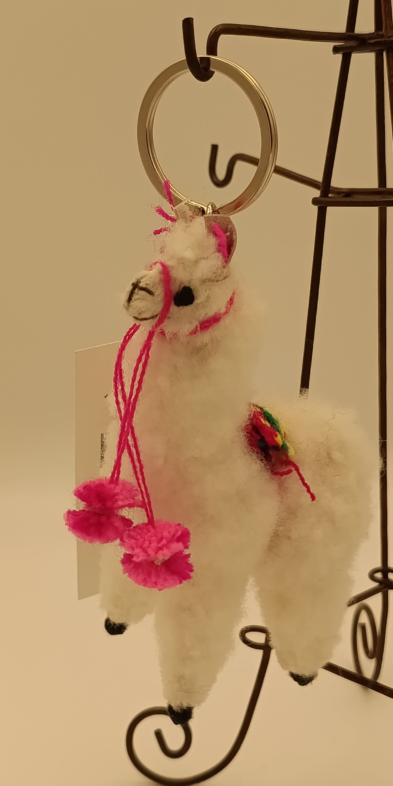 アルパカ純毛を使用した大人気のキーホルダー。こちらは毛足の短い純毛を使用しています。鞄に付けたら注目の的間違いナシ!手作り品のため大きさやデザインが多少異なります。